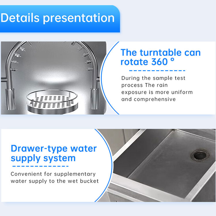 The rain test chamber is an environmental reliability testing equipment specifically designed to simulate the natural rainfall environment. By artificially recreating different intensities, angles, and rainfall volumes of rainfall scenarios, it tests and evaluates the waterproof performance of products. Its core value lies in helping enterprises identify potential sealing defects and performance degradation issues of products in the rain environment during the product development, production inspection, and quality control processes. This helps enhance the reliability and safety of the products in actual use, and it is widely applied in various fields such as electronics and electrical engineering, automotive manufacturing, aerospace, medical devices, outdoor lighting, etc.